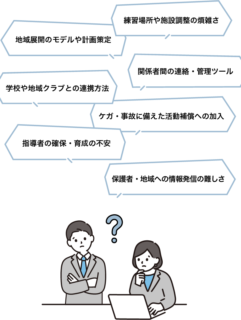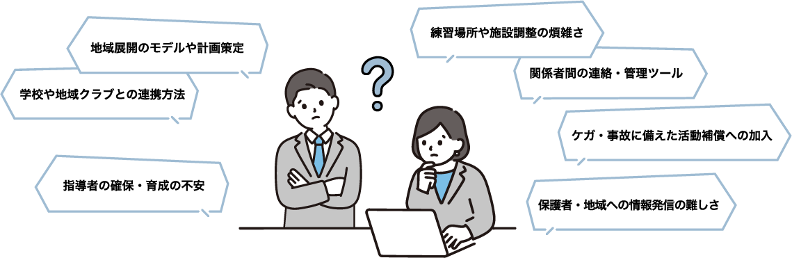 部活動地域展開においても、生徒・保護者・クラブ・学校・自治体間の